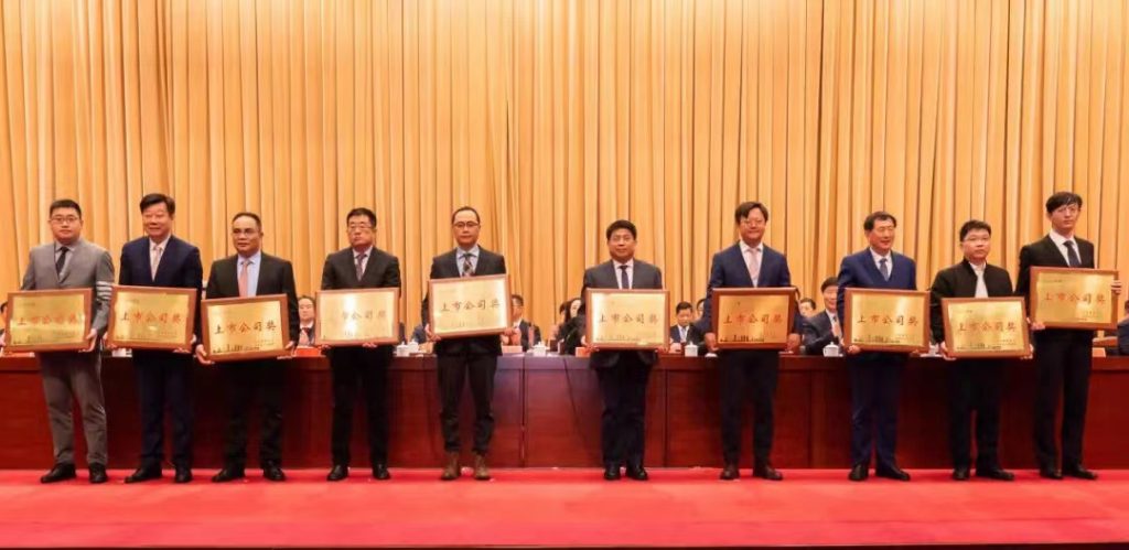 ? ? ? 2月7日上午,市委、市政府召開市產業發展大會,全面落“532”發展戰略,堅持制造立市、產業強市、質量興市,加快打造長三角產業中軸,奮力建設國際化智造名城。我司以及同惠電子、中英科技、易電行、蘇文電能、晶雪股份、宏微科技、匠心家居、華潤化學、卡姆丹克等2021年新增的10家上市公司榮獲“上市公司獎”并上臺接受表彰。此外,我司入圍了工業三星級企業的名單,董事長楊森茂先生還榮獲了“明星企業家”的稱號。